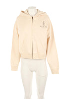 Sporty & Rich Cream Cotton Hoodie. Cream. Long Sleeve. Crewneck. Zip fastening - Front. 100% Cotton. Large (UK 12, US 8, FR 36, IT 40). Bust: 44 in. Waist: 44 in. Hips: 40 in. Length: 21 in.