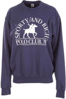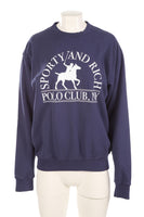 Sporty & Rich Navy Cotton Sweatshirt. Navy. Long Sleeve. Crewneck. Pull on. 100% Cotton. Small (UK 8, US 4, FR 36, IT 40). Bust: 44 in. Waist: 44 in. Hips: 35 in. Length: 26 in.