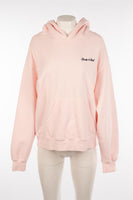 Sporty & Rich Pink Cotton Hoodie. Pink. Long Sleeve. Crewneck. Pull on. 100% Cotton. Medium (UK 10, US 6, FR 38, IT 42). Bust: 49 in. Waist: 47 in. Hips: 41 in. Length: 25.5 in.
