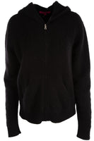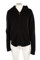 The Elder Statesman Black Cashmere Hoodie. Black. Long Sleeve. V-Neck. Zip fastening - Front. 100% Cashmere. Large (UK 12, US 8, FR 42, IT 46). Bust: 44 in. Waist: 40 in. Hips: 40 in. Length: 23 in.