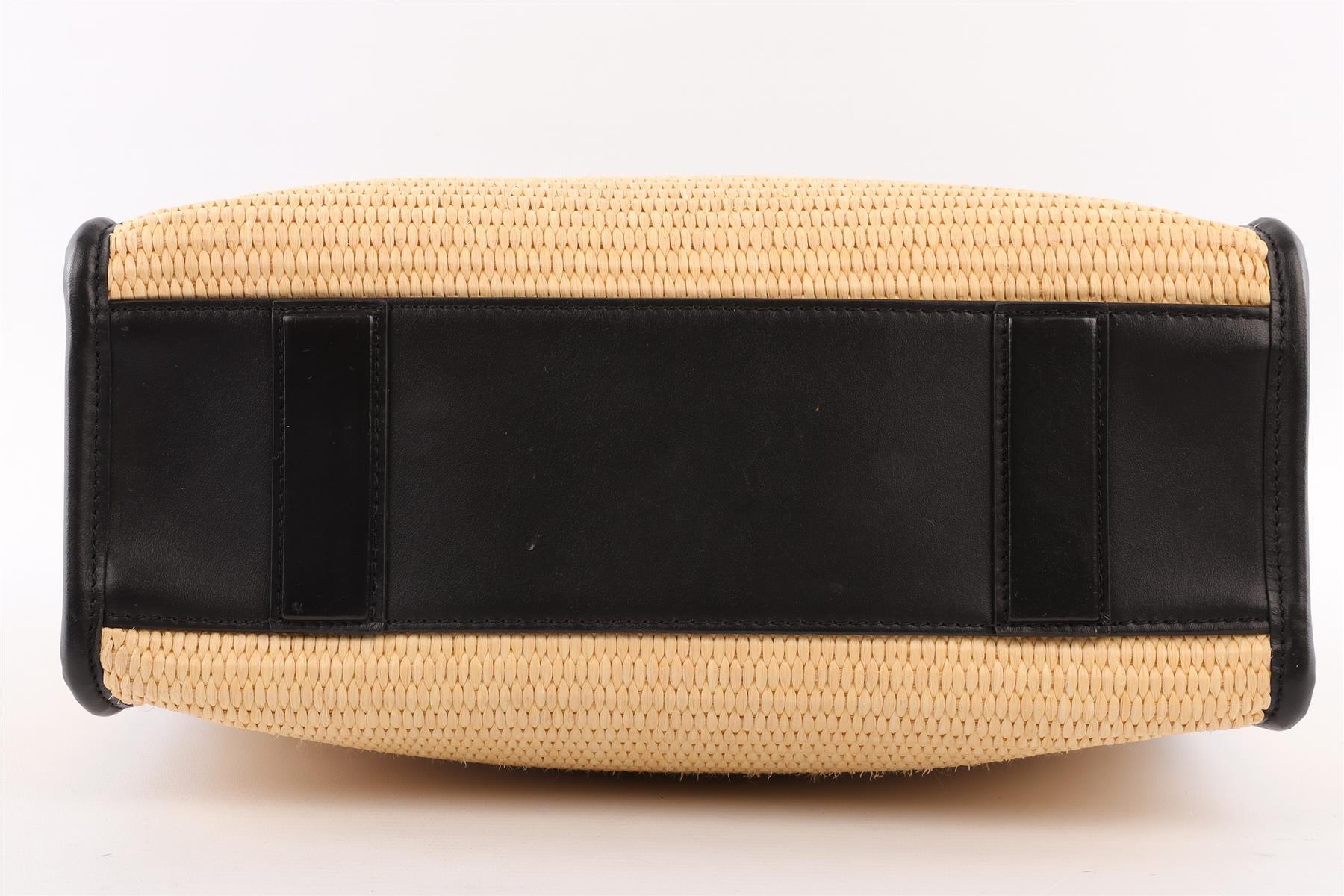 Very good condition - Light scuffing to exterior material at corners. Light marks to exterior material at base. Light fraying and residue to raffia accents. Light marks to interior material; see pictures.