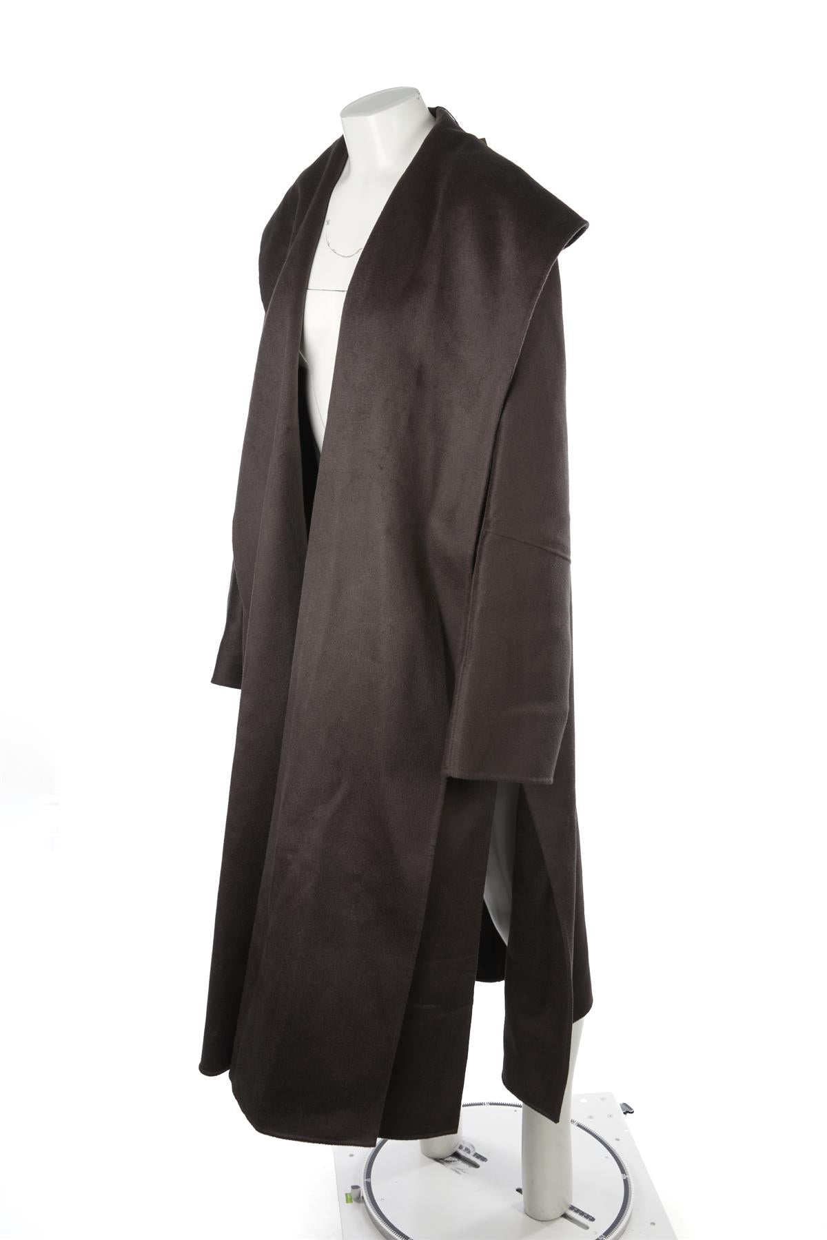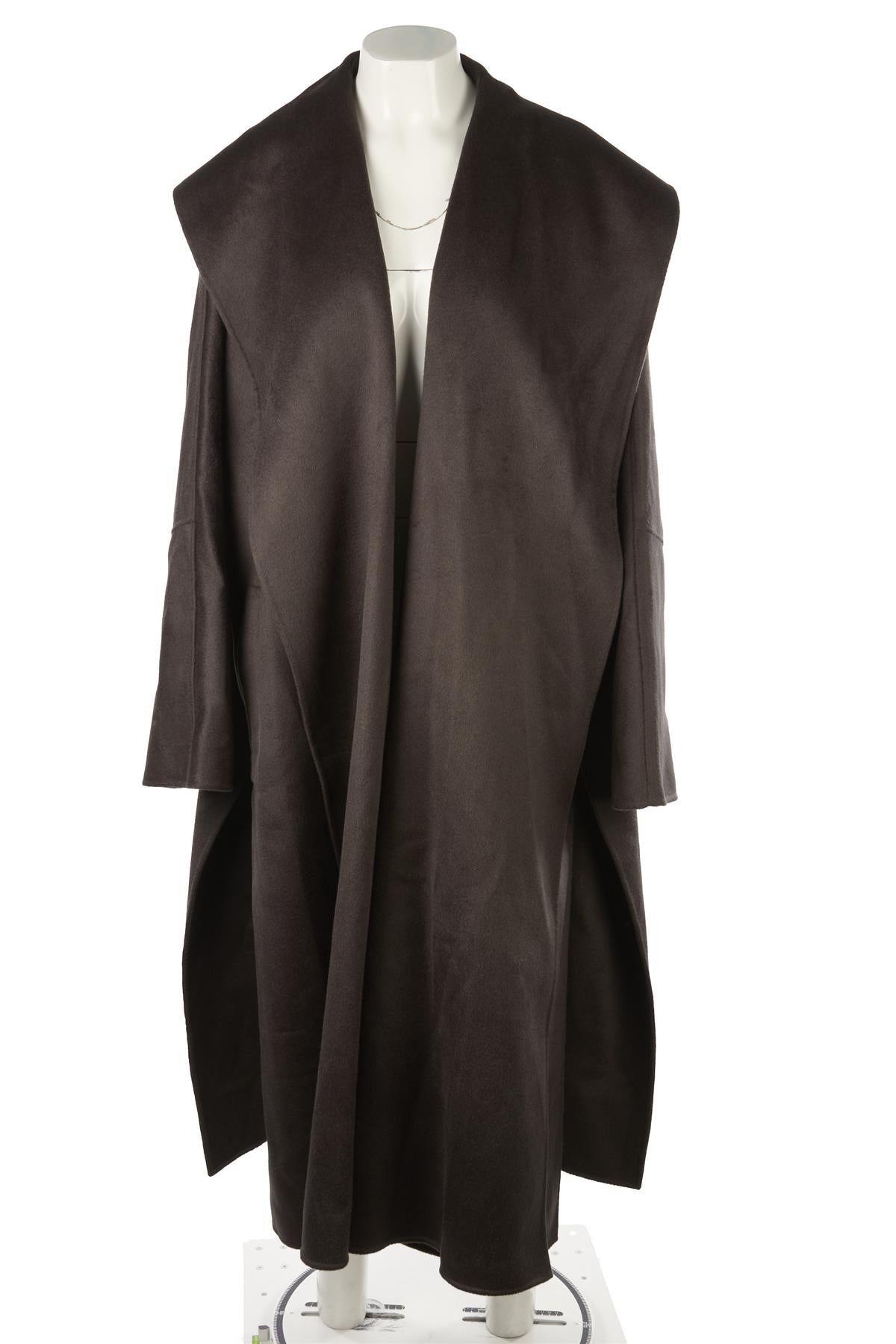 Tove Grey Wool Coat. Grey. Long Sleeve. V-Neck. Slips on. 90% Wool, 7% Cashmere, 3% Polyester. FR 40 (UK 12, US 8, IT 44). Shoulder to Shoulder: 23 in. Bust: 50 in. Waist: 50 in. Hips: 50 in. Length: 52 in.