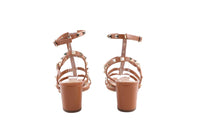 VALENTINO GARAVANI BROWN ROCKSTUD LEATHER SANDALS EU 38