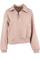 Varley Pink Fleece Sweatshirt. Pink. Long Sleeve. Mock Neck. Zip fastening - Front. 100% Recycled Polyester, 100% Cotton, 100% Polyester. Medium (UK 10, US 6, FR 38, IT 42). Bust: 44 in. Waist: 42 in. Hips: 40 in. Length: 20.5 in.