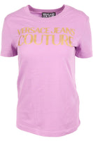Versace Jeans Couture Purple Cotton T-Shirt. Purple. Short Sleeve. Crewneck. Pull on. 100% Cotton. Medium (UK 10, US 6, FR 38, IT 42). Bust: 34 in. Waist: 32 in. Hips: 36 in. Length: 24 in.