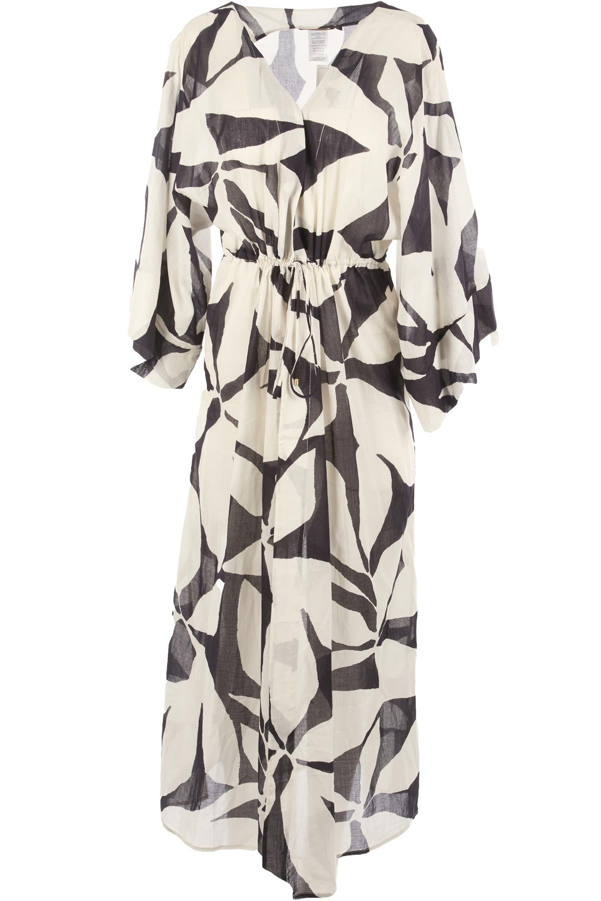 Vix Paula Hermanny Black Cotton Kaftan. Black and white. Long Sleeve. V-Neck. Tie fastening - Front. 100% Cotton. Medium (UK 10, US 6, FR 38, IT 42). Bust: 34 in. Waist: 32 in. Hips: 40 in. Length: 55.5 in.