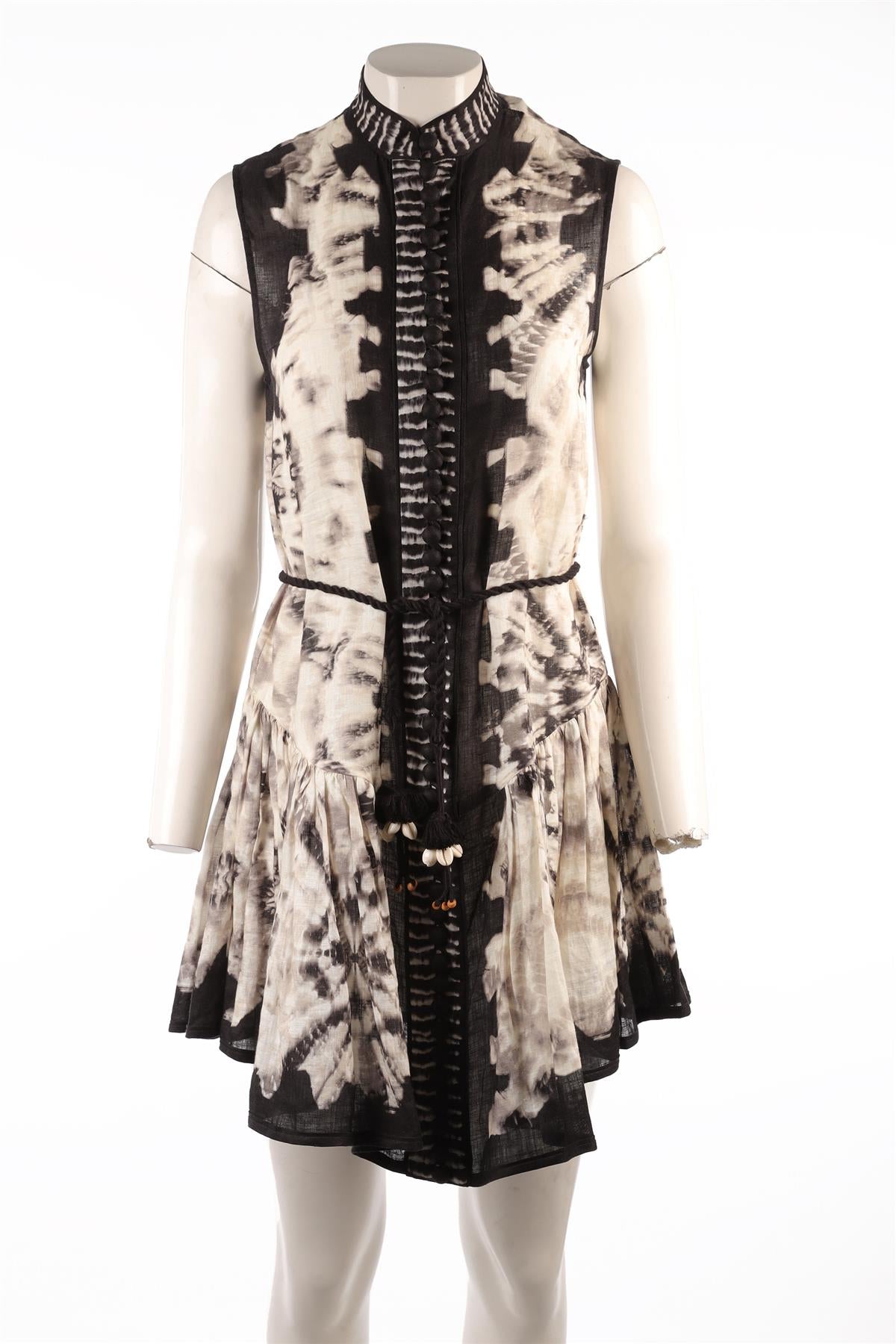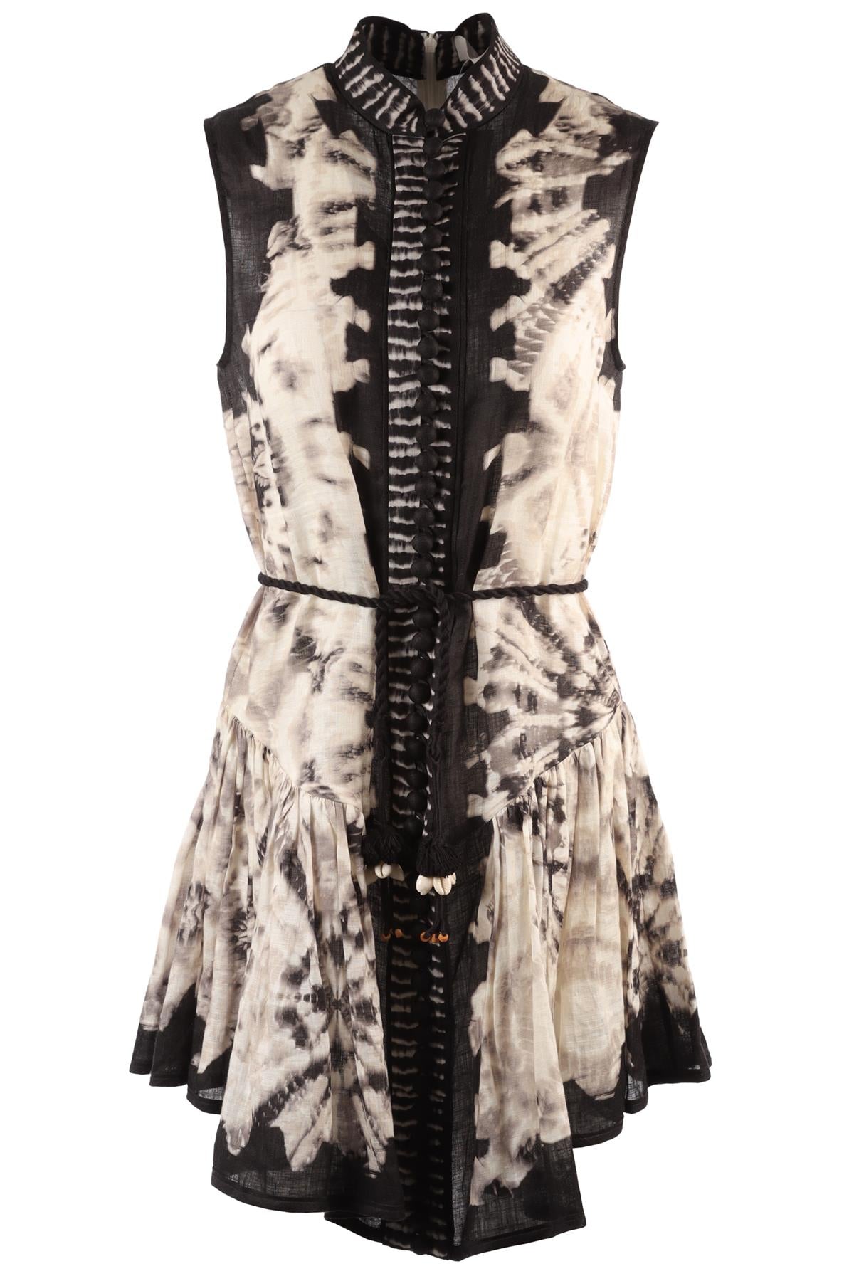 Zimmermann Black Linen Mini Dress. Black, grey and white. Sleeveless. Mock Neck. Zip fastening - Back. 100% Linen. 1 (UK 10, US 6, FR 38, IT 42). Bust: 35 in. Waist: 36 in. Hips: 43 in. Length: 35.5 in.