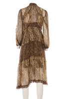 Zimmermann Brown Crepe Maxi Dress. Brown, black and cream. Long Sleeve. V-Neck. Button fastening - Front. 90% Polyester, 10% Elastane. 1 (UK 10, US 6, FR 38, IT 42). Bust: 32 in. Waist: 29 in. Hips: 40 in. Length: 48 in.
